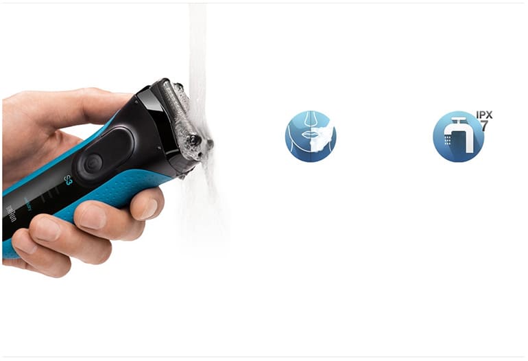 Бритва Braun Series 3 сертифицирована в соответствии со стандартом IPX7 — ее можно без проблем погружать в воду на глубину до 5 метров. Это значит, что ее можно удобно ополаскивать под проточной водой, что гарантирует легкость очистки.