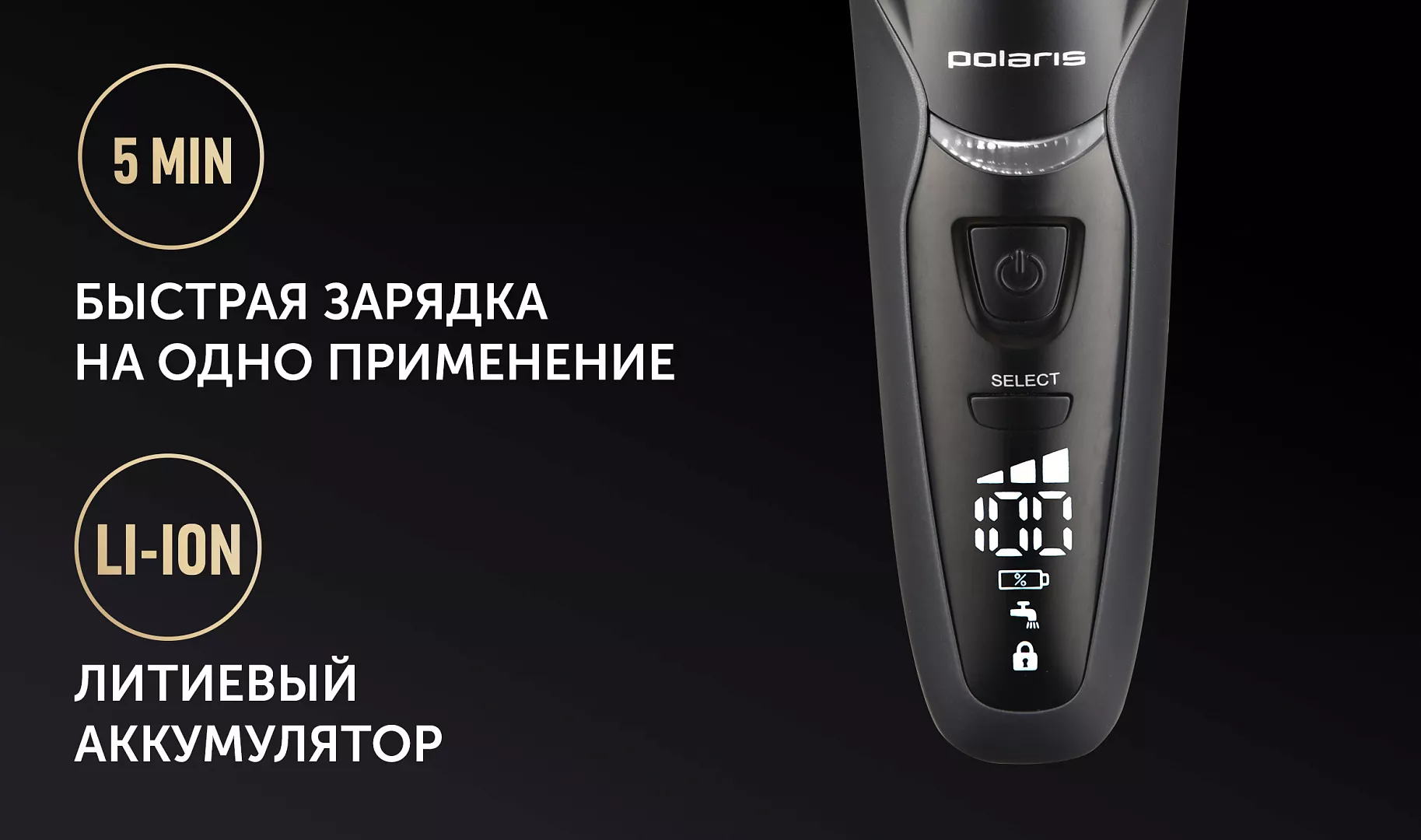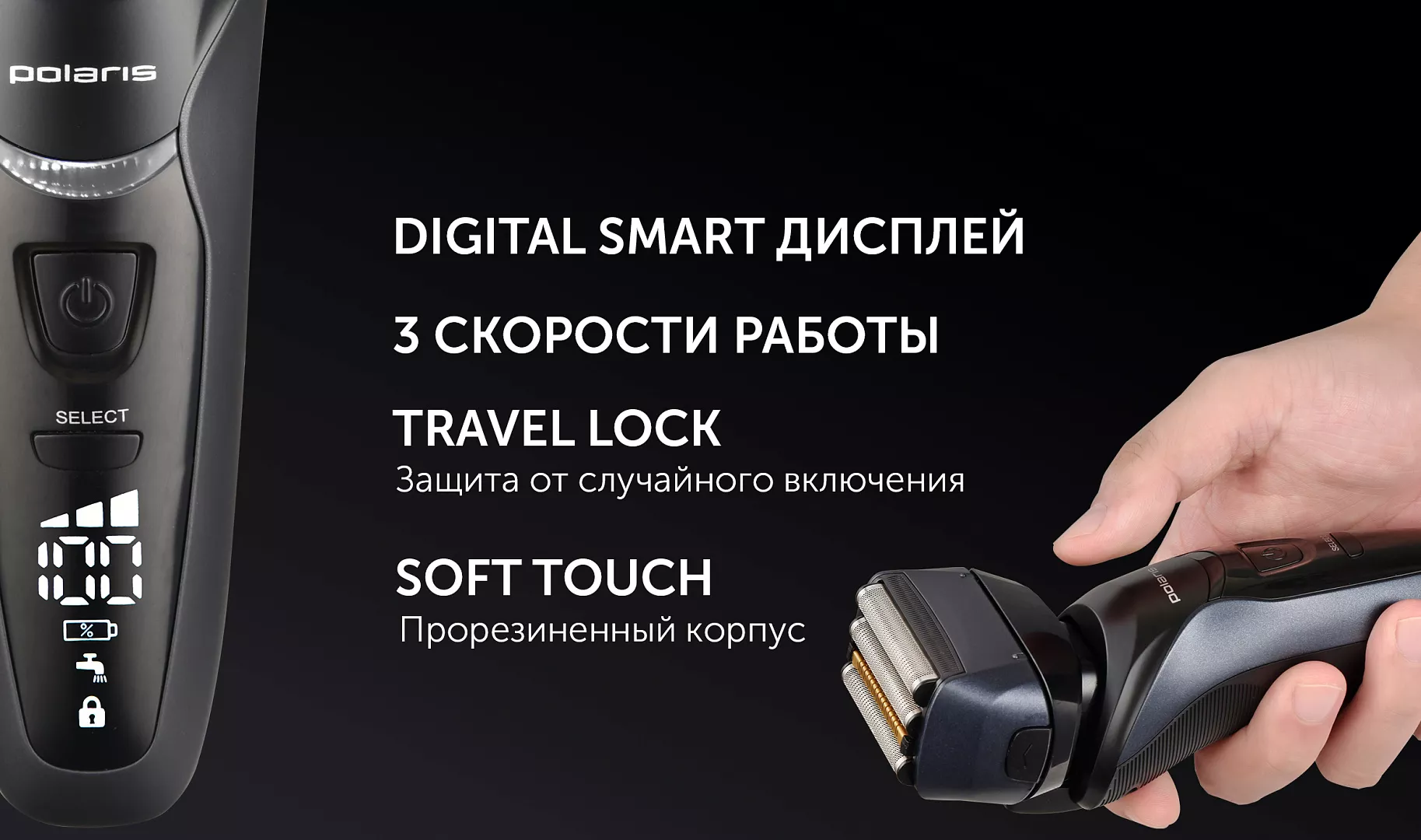 Shaver Polaris PMF1016RC Sistem de ras Sita Moduri de utilizare Uscat, Umed Indica%3Fii Indicator de incarcare a bateriei Timp func%3Fionare de la baterie 80 min Tip control Electronic cu butoane Carcasa rezistenta la apa Da