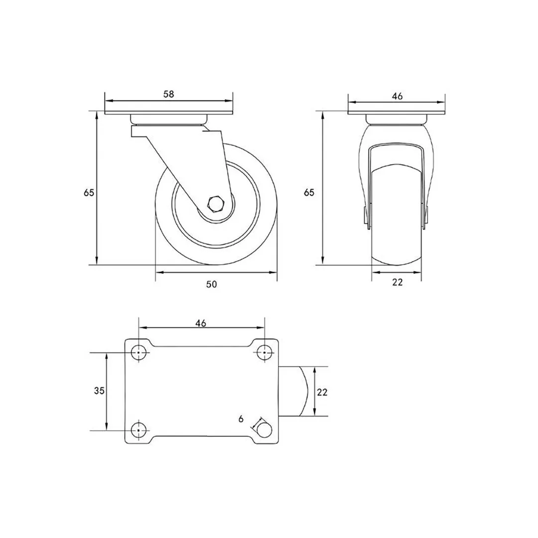Колесо поворотное изготовлено из листовой стали методом штамповки. Протектор выполнен из полипропилена. Колеса для тележек оснащаются ступичным подшипником, который позволяет равномерно распределять нагрузку по всей ступице. Широкий температурный диапазон от - 20° до + 50°, за счет использования специальных смазочных материалов, позволяет эксплуатировать колеса для тележек не только в складских помещениях, но и на улице. Колесо для тележки диаметром 50 мм. Грузоподъемность 25 кг.