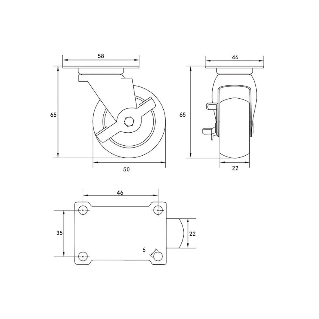 Мобильное колесо поворотное с тормозом Vorel 87412 50 мм 25 кг VOR87412