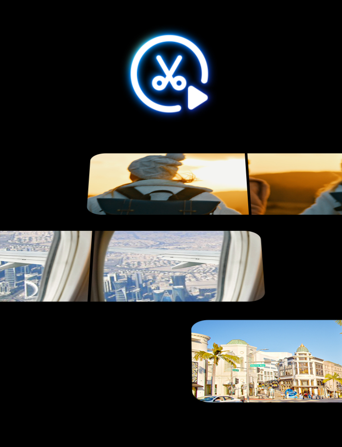 Создавайте ролики без усилий, объединяя видео и просто нажимая «Автообрезка». ИИ определит ключевое действие и обрежет его в готовые клипы, которые вы можете легко изменить до нужной вам длины.